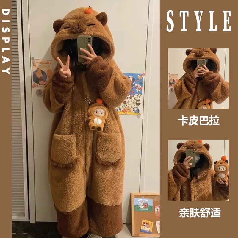 特別なオファー!!かわいいカピバラ カピバラ ネグリジェ秋と冬の新しいコーラルベルベットパジャマ女性の肥厚ホーム服