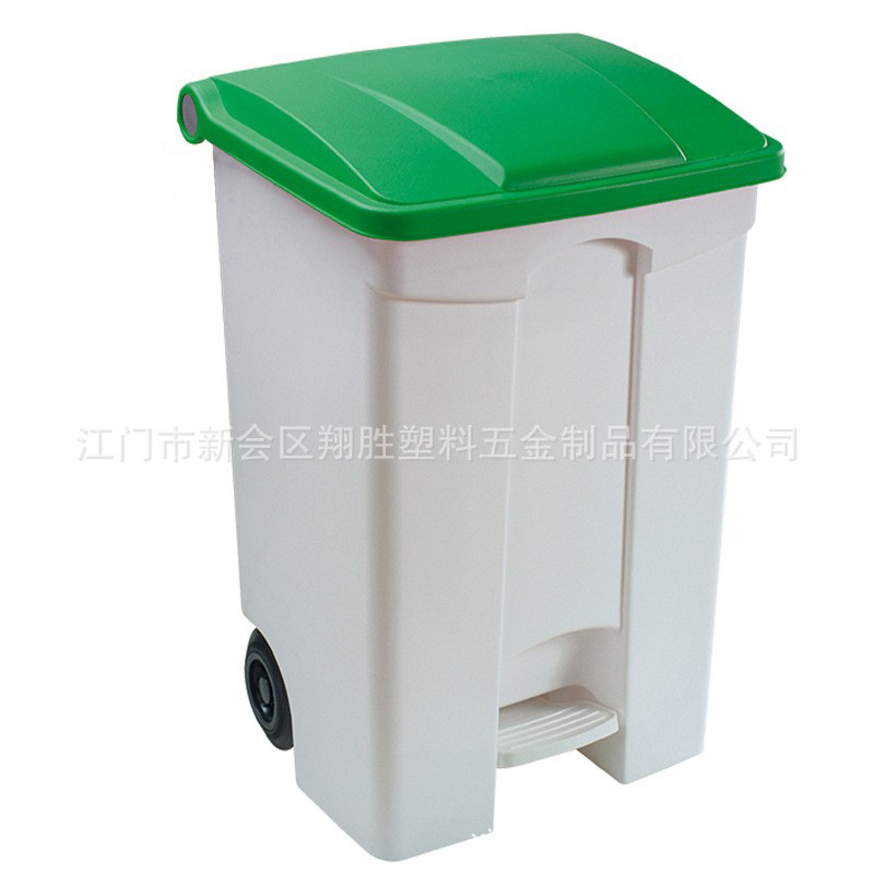 メーカー卸売り屋外街環衛厚プラスチックゴミ箱四色分類帯輪足踏みゴミ箱