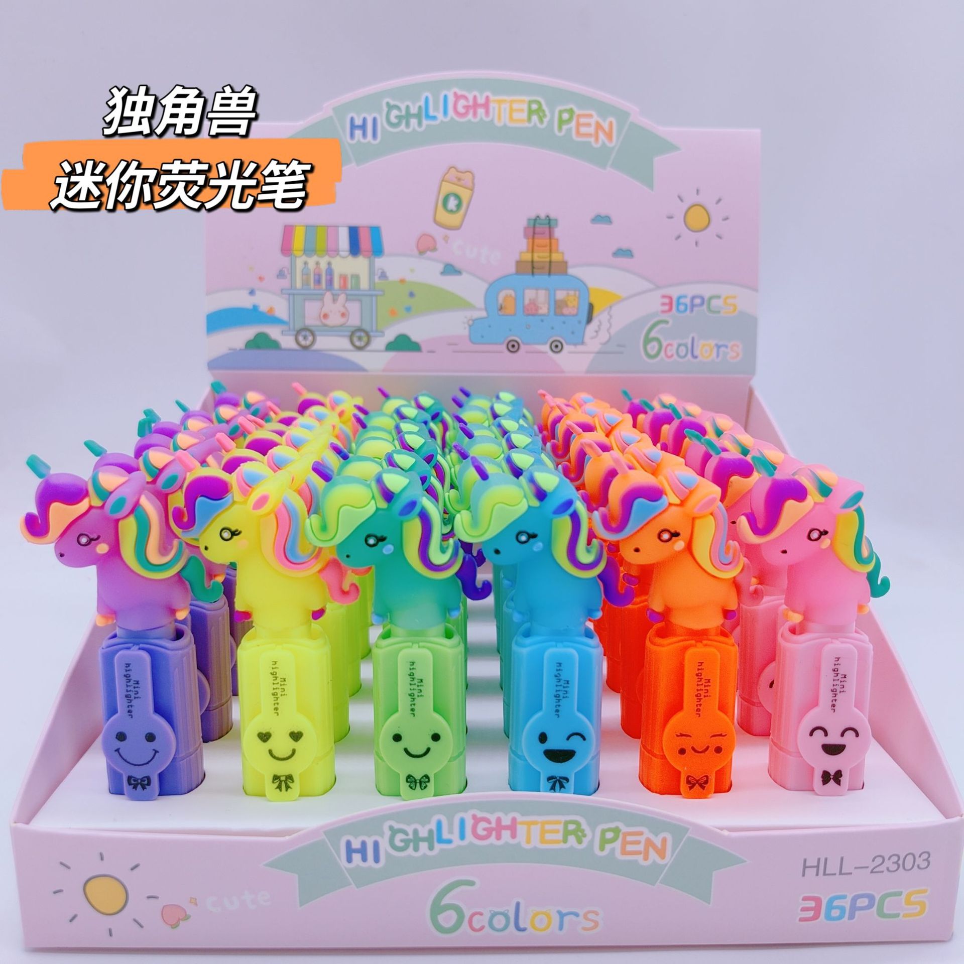 かわいいユニコーンシリコーン蛍光ペンマカロン色クリエイティブ蛍光ペンセット学生絵画ペン落書き