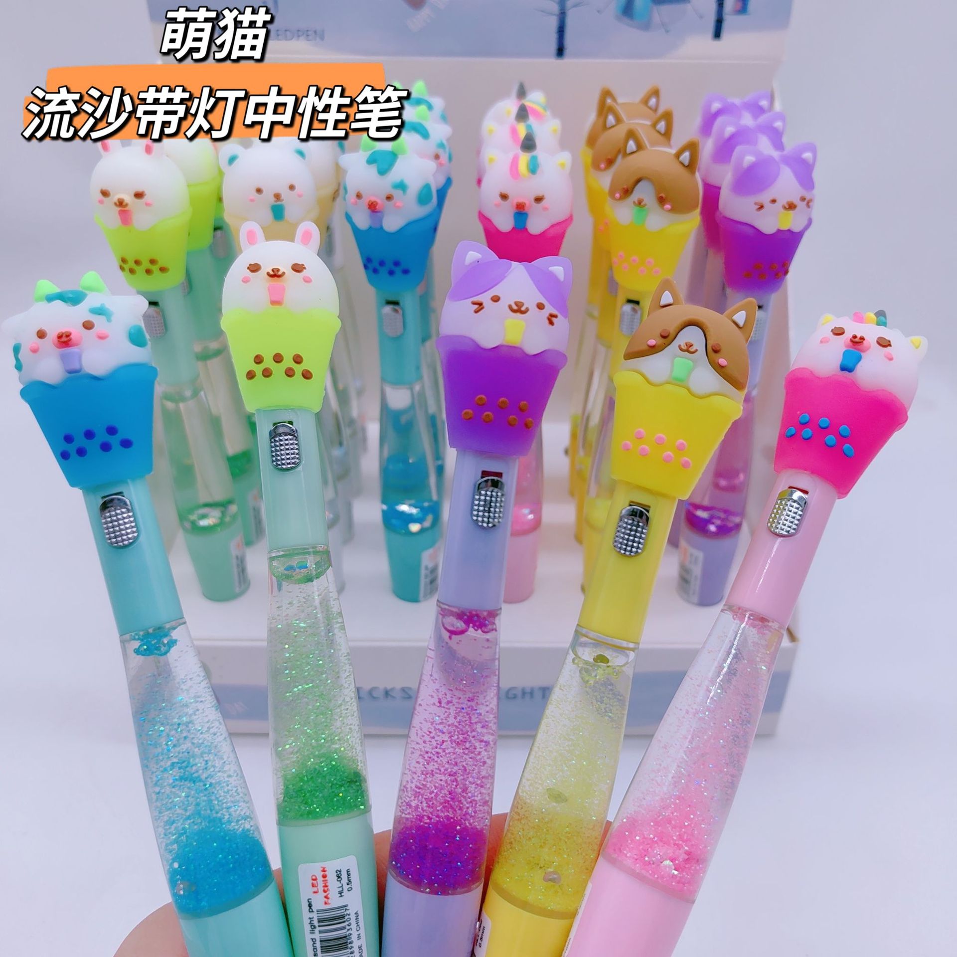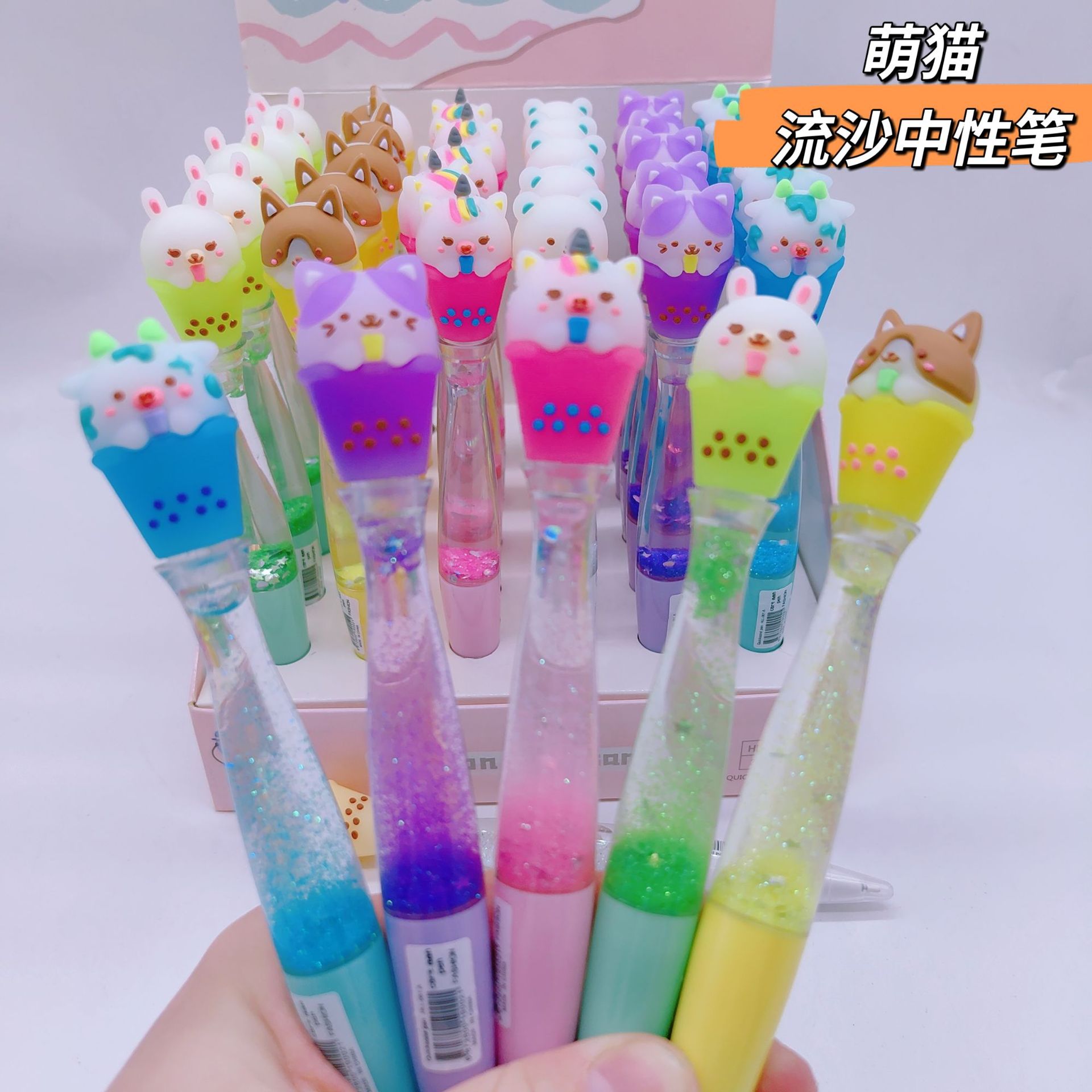 かわいいアニメ萌え猫流砂ペン小学生黒水性ペン創意文房具入油液体自慢中性ペン