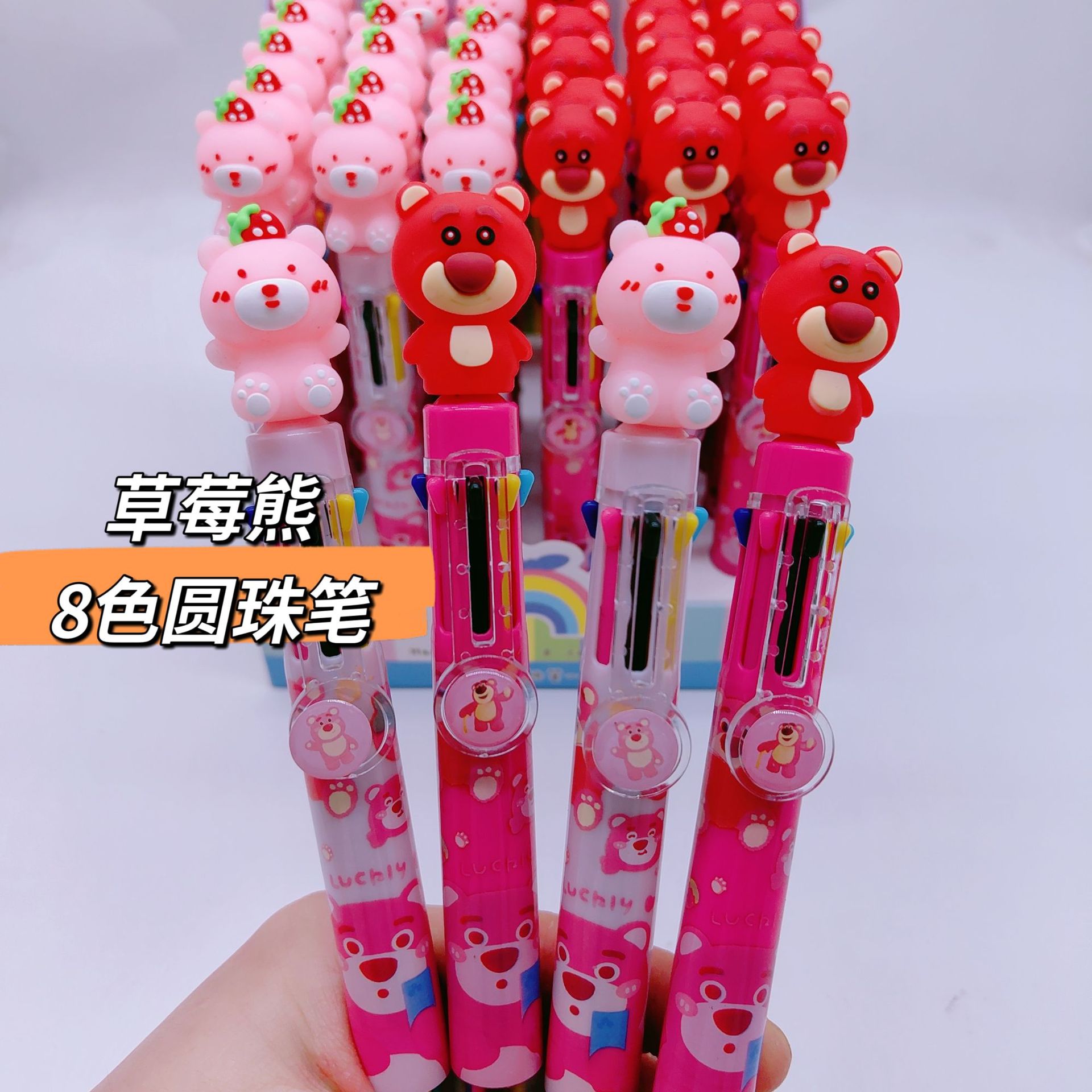 いちご熊8色ペンかわいいピンクいちご手帳押しボールペン学生学習文房具用品卸売り