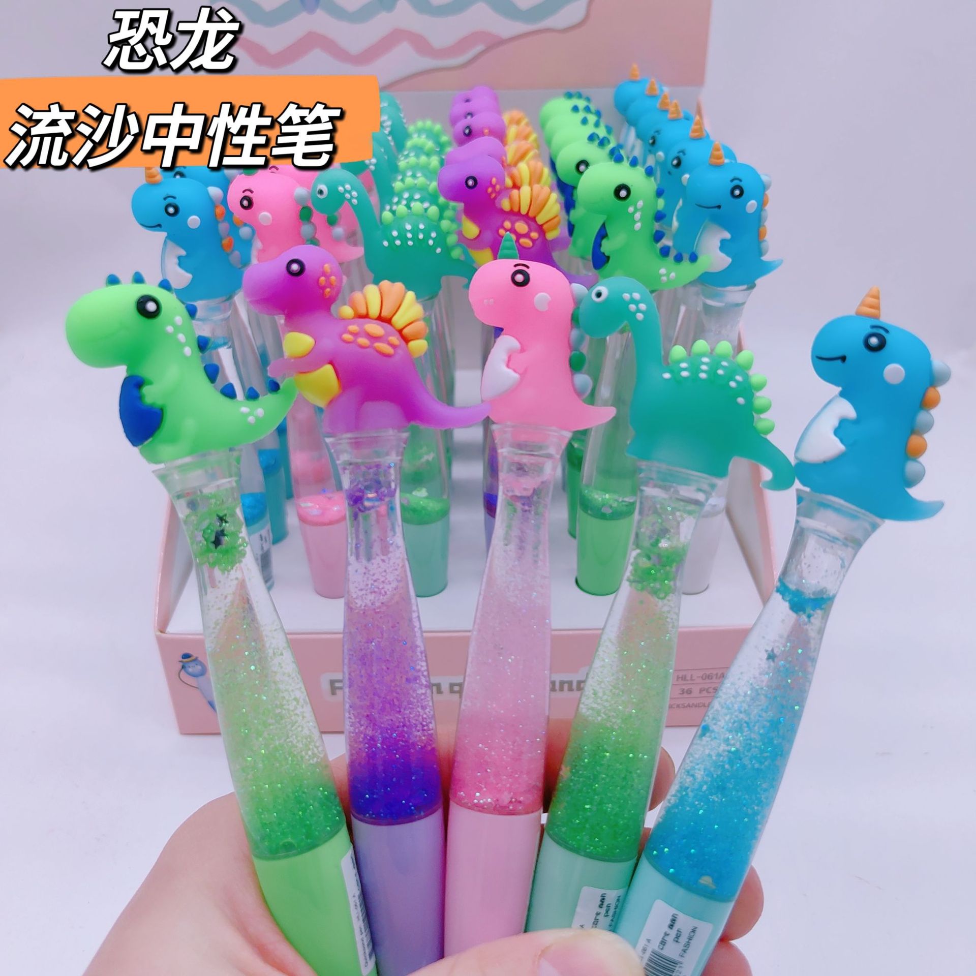 かわいい漫画の恐竜の流砂のペンの黒色の水性のペンの創意の子供の文房具は油の液体のまぶしい中性のペンに入ります。