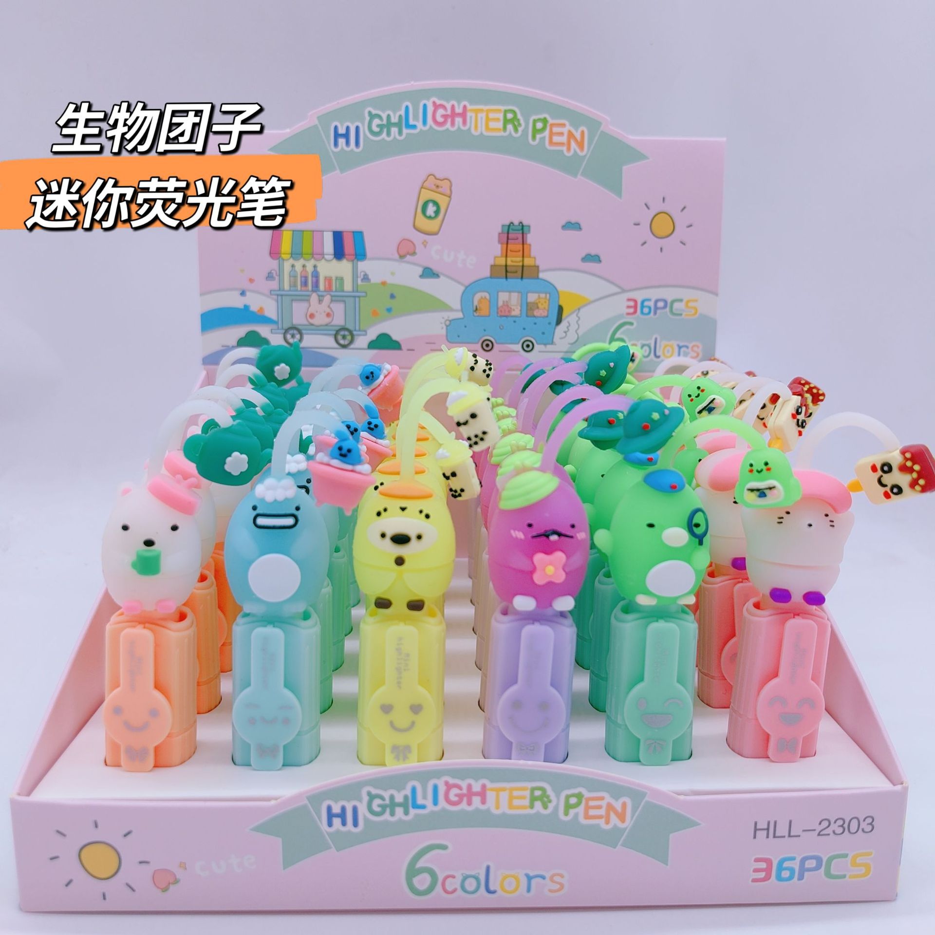 クリエイティブアニメのデザイン6色蛍光ペン卸売りかわいいコーナー生物団子手帳ペンカラーマーカーペン