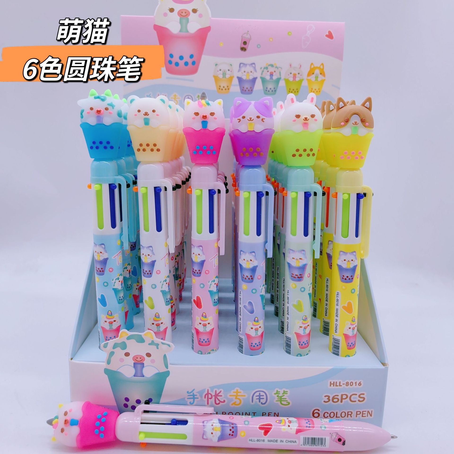 韓国版アニメミルクティー萌え猫多色ペンかわいい少女心六色筆ボールペン学生手帳ペンカラー