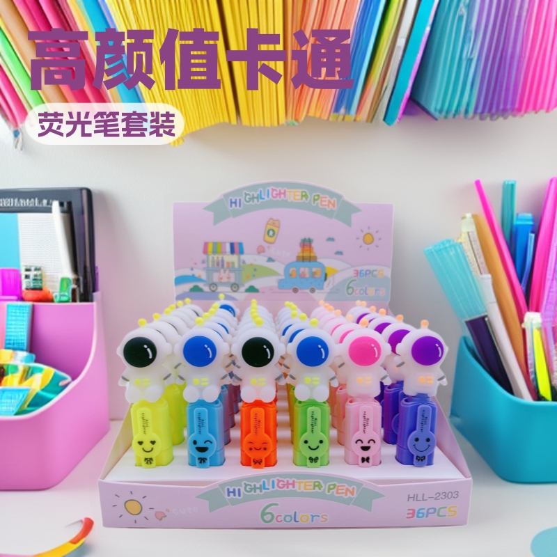 新型かわいいアニメ宇宙人ミニ6色蛍光ペンセットデザイン高颜値学生カラーマーカー