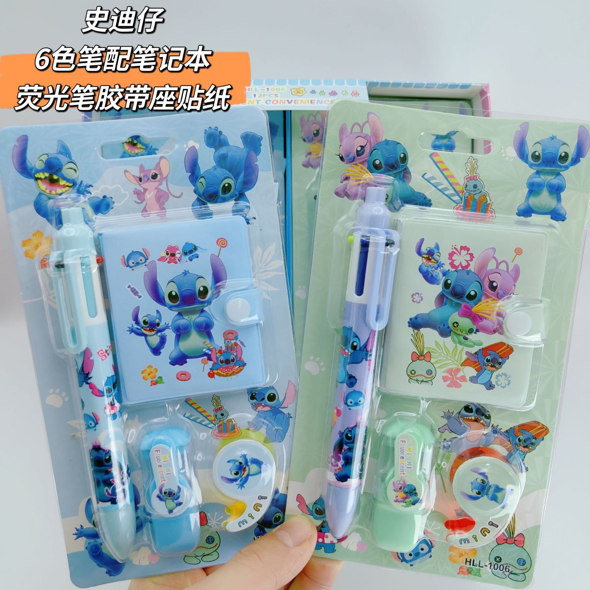 新カピバラ スティッチ ノート 6色ペン 蛍光ペン テープホルダー ステッカー 組み合わせ文具セット ギフト