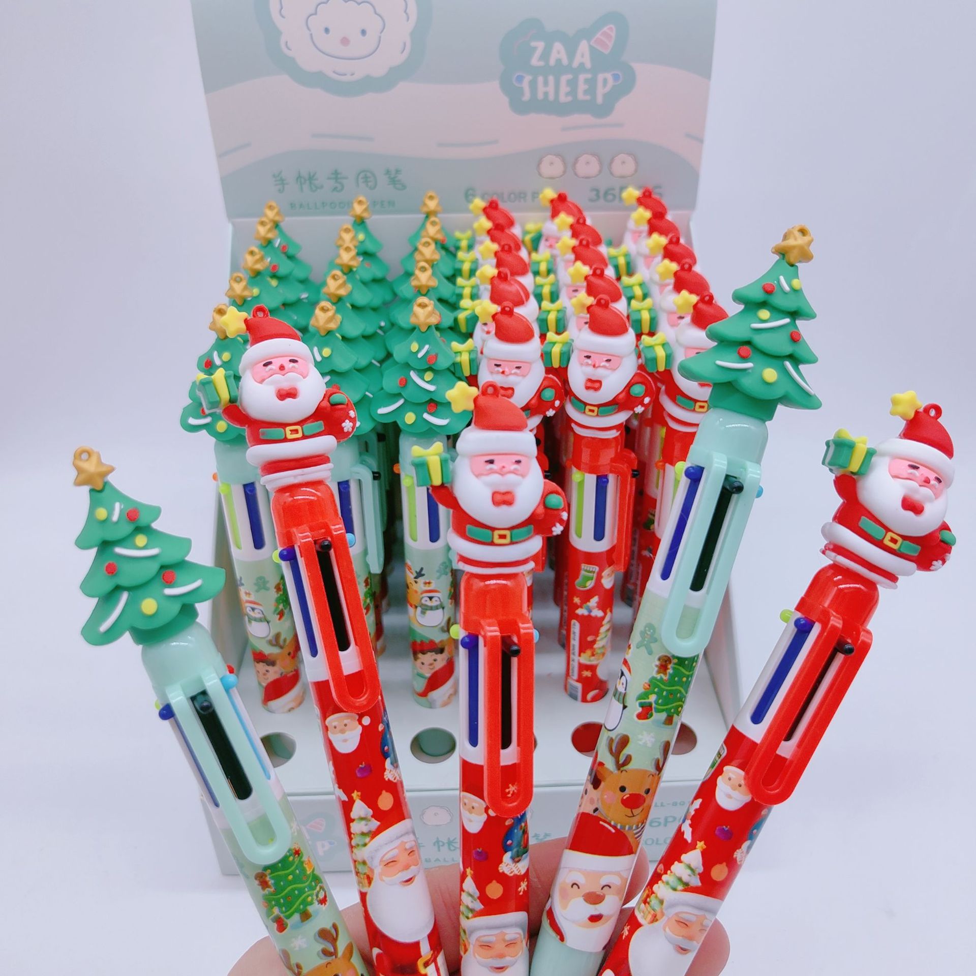 外国貿易の新型のクリスマスの漫画の頭のサンタクロースの多色は創意の手帳のペンの6色を押してボールペンを押します。