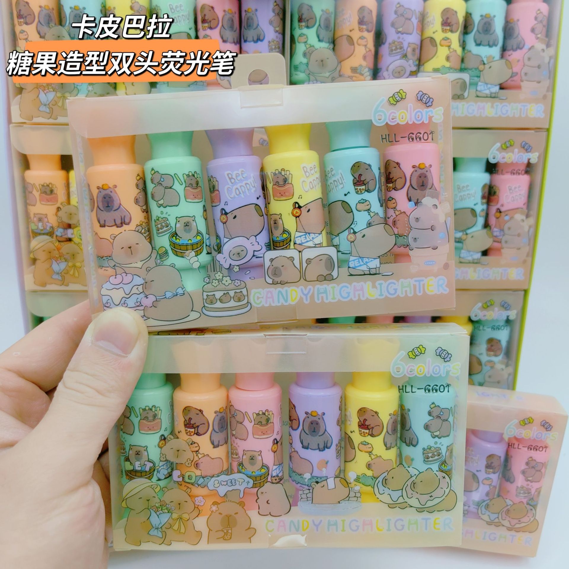 カピバラ バブジワ 双頭蛍光ペン 6色 キャンディ風蛍光ペン 双頭カピバラマーカー 文具