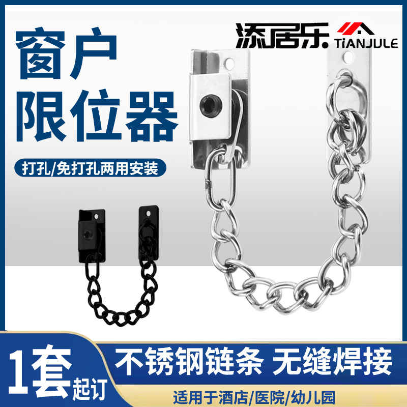ステンレス窓制限器子供の窓登り防止穴なし安全ロックはドアと窓の盗難防止チェーンロックを調節できます。