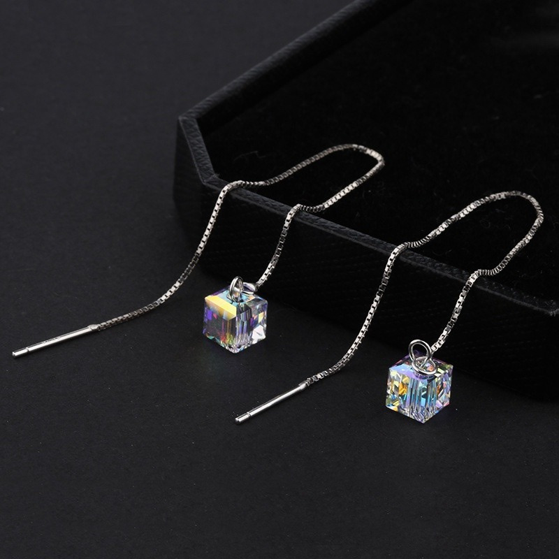 オーストリアオーロラシュガーキューブクリスタルイヤリングレディースタッセルイヤリングロングイヤリング気質ファッショナブルで多用途なイヤリング