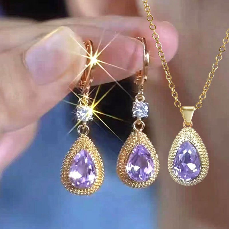 女性のためのライトラグジュアリーハイエンドパープルクリスタルイヤリングネックレス2024新しいトレンディな気質ニッチデザインファッショナブルで多用途