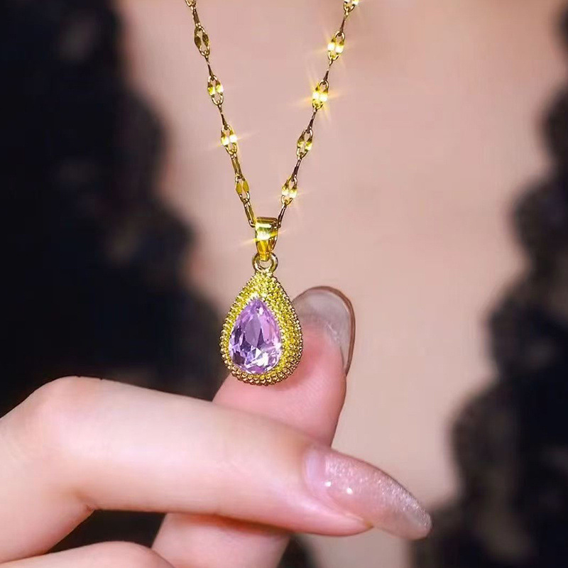 女性用の多用途なパープルジルコンウォータードロップネックレス、軽い豪華さとハイエンドのドリアンペンダント、夏の新しい鎖骨チェーンネックレス