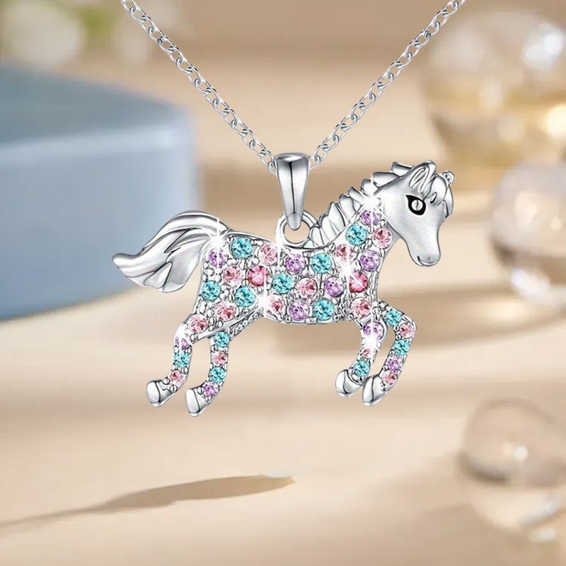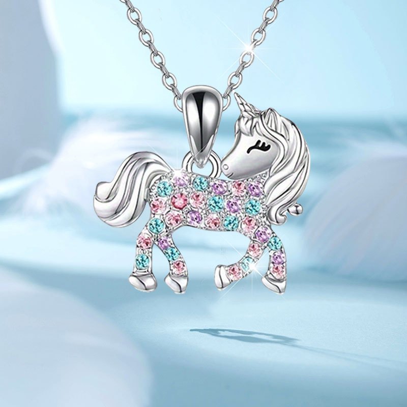 かわいい漫画の光沢のある絶妙なユニコーンペンダントネックレス新しい創造的な個性記念誕生日ギフトネックレス