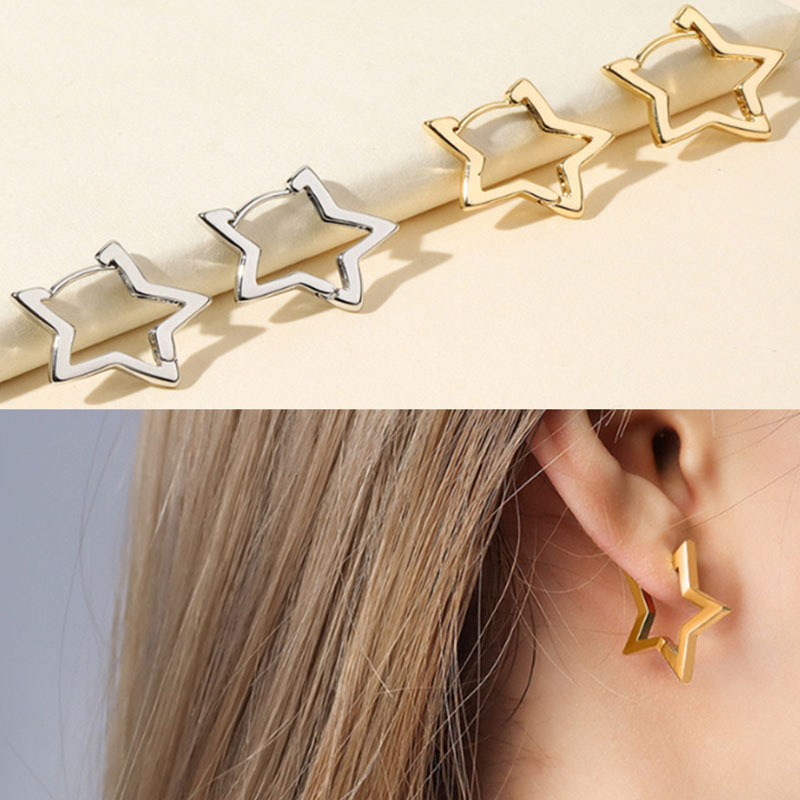 シンプルな気質、多用途、ハイエンドのイヤリング、中空スターイヤリング、コールドスタイルイヤリング、ニッチデザインインイヤリング