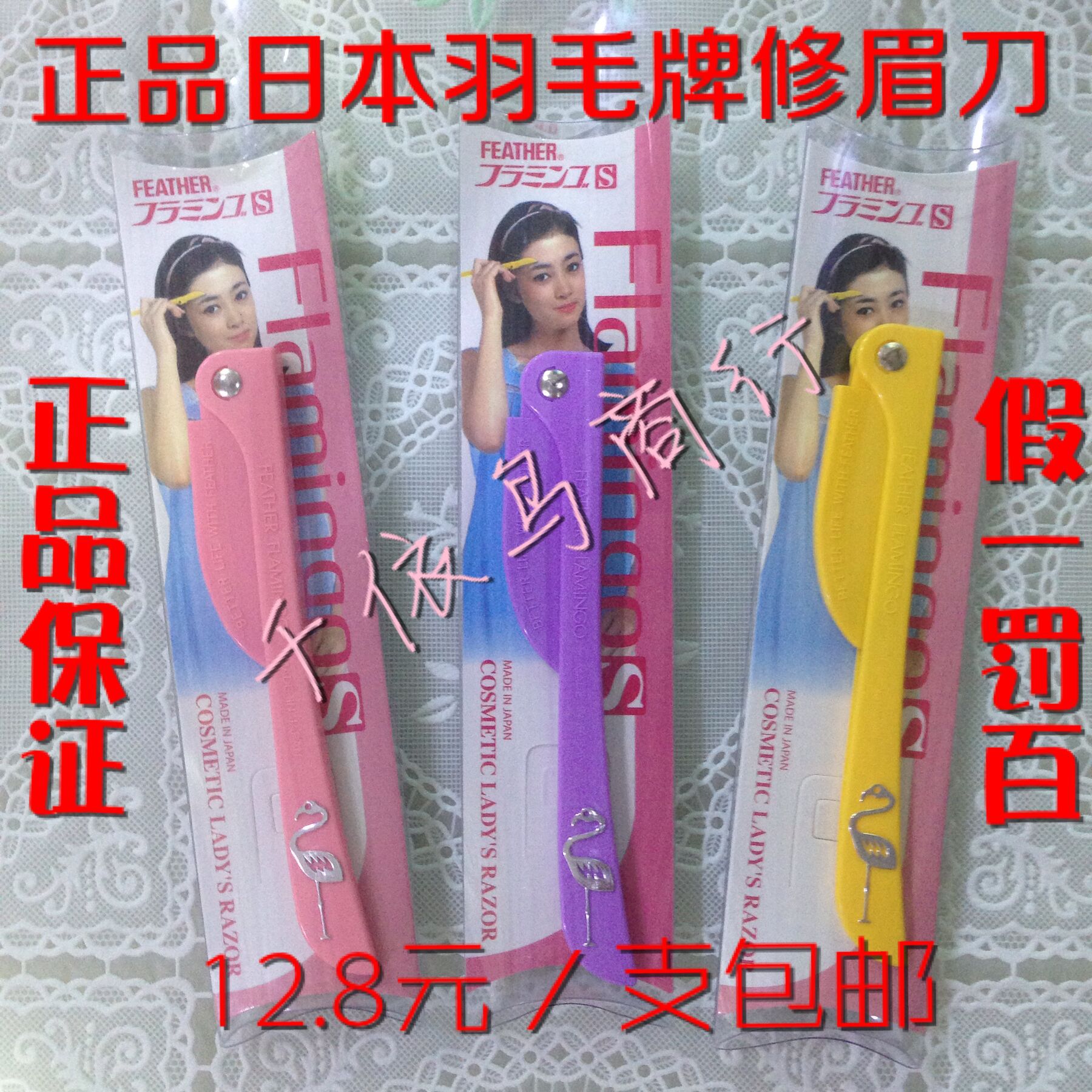 正品羽根安全型折り畳み式眉修刀feather3本入初心者女性鶴牌美容眉刀