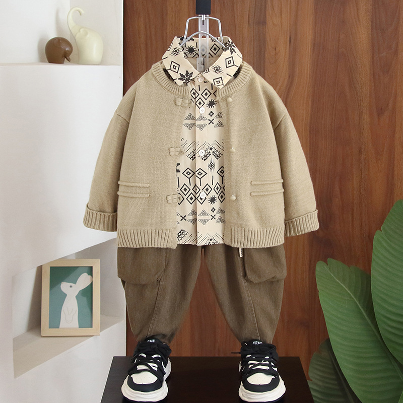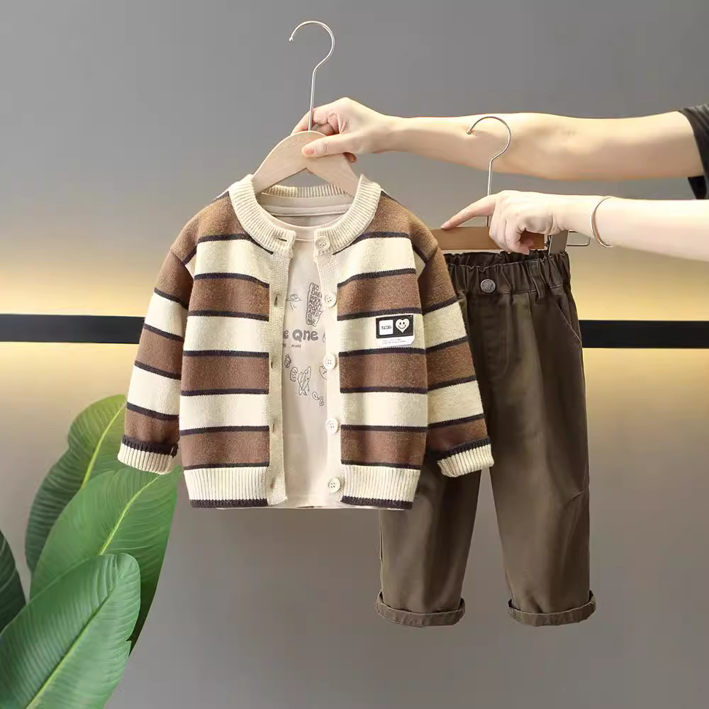 男の子秋服セット2025新作子供用イケメン風セーター幼児春秋アウトドア服3点セット流行