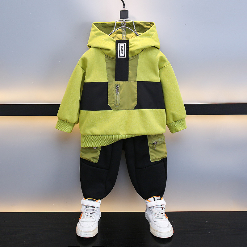 男の子の秋のスーツ 2025 新しいファッショナブルなベビーフード付きスウェットシャツ子供の春と秋の子供服男の子の秋の服
