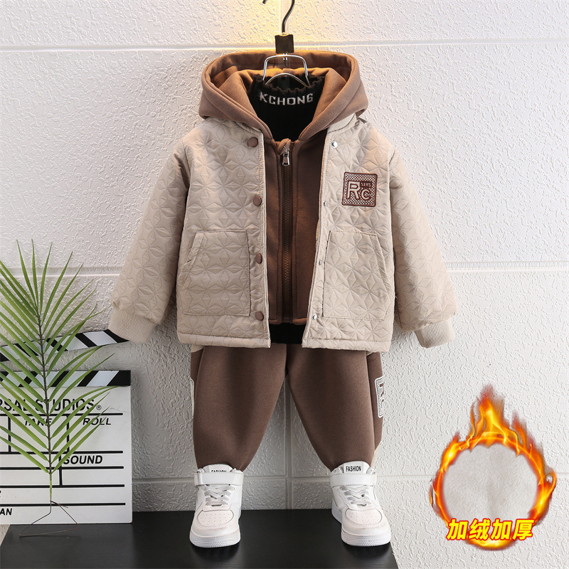 男の子用裏起毛スーツ2025子供用おしゃれ新作男の子クールでかっこいい服ベビー秋冬韓国風3点セット
