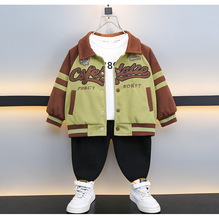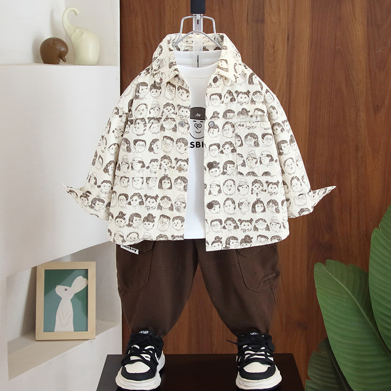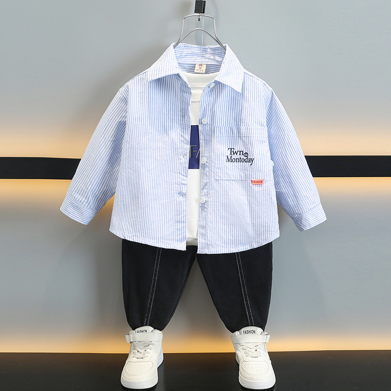 男の子秋服セット2025新作クールでスタイリッシュな子供用シャツジャケット3点セットベビー春秋服トレンドブランド