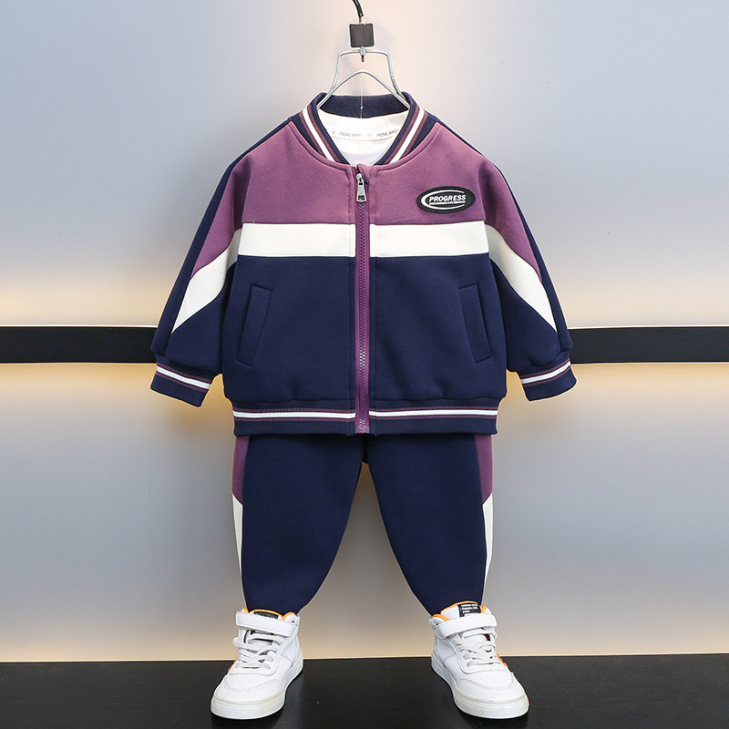 男児2024新型秋装セットファッション赤ちゃん色合わせ野球服格好いい子供春秋スポーツ2点セット