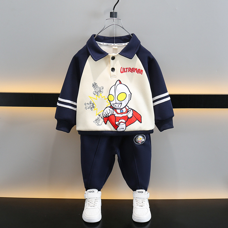 ウルトラマン服男児秋金セット2024新型洋気赤ちゃん児童poloシャツ2点セット潮
