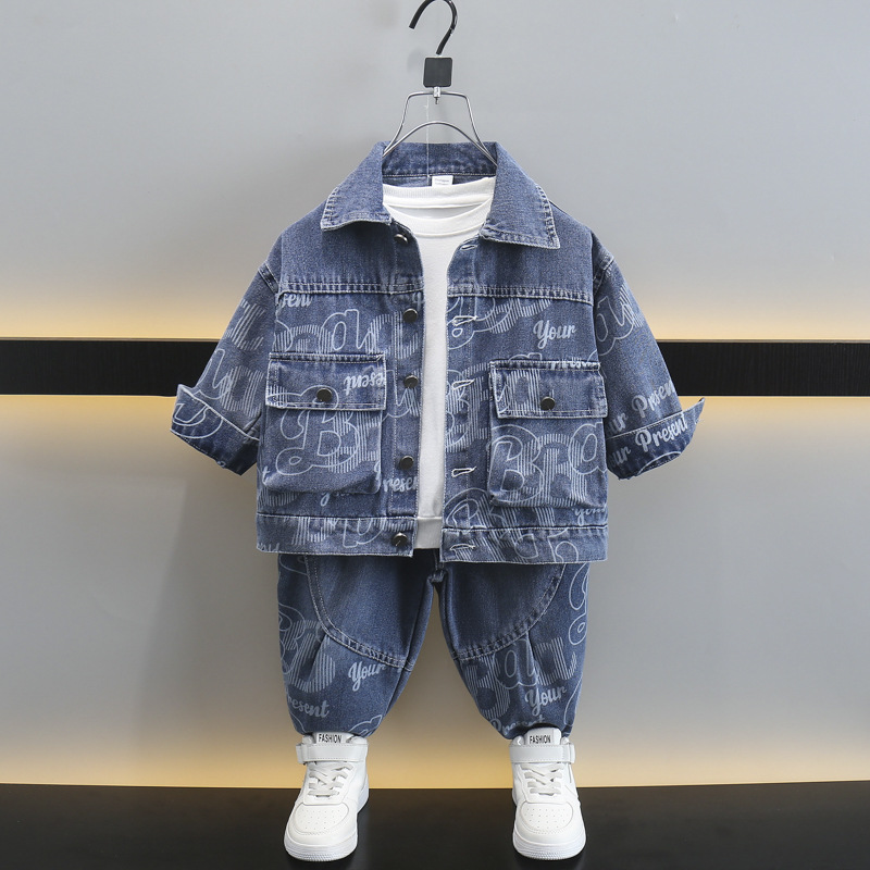 子供服男の子春デニムスーツ2025春秋新作ハンサムジャケット男の子ベビー春服