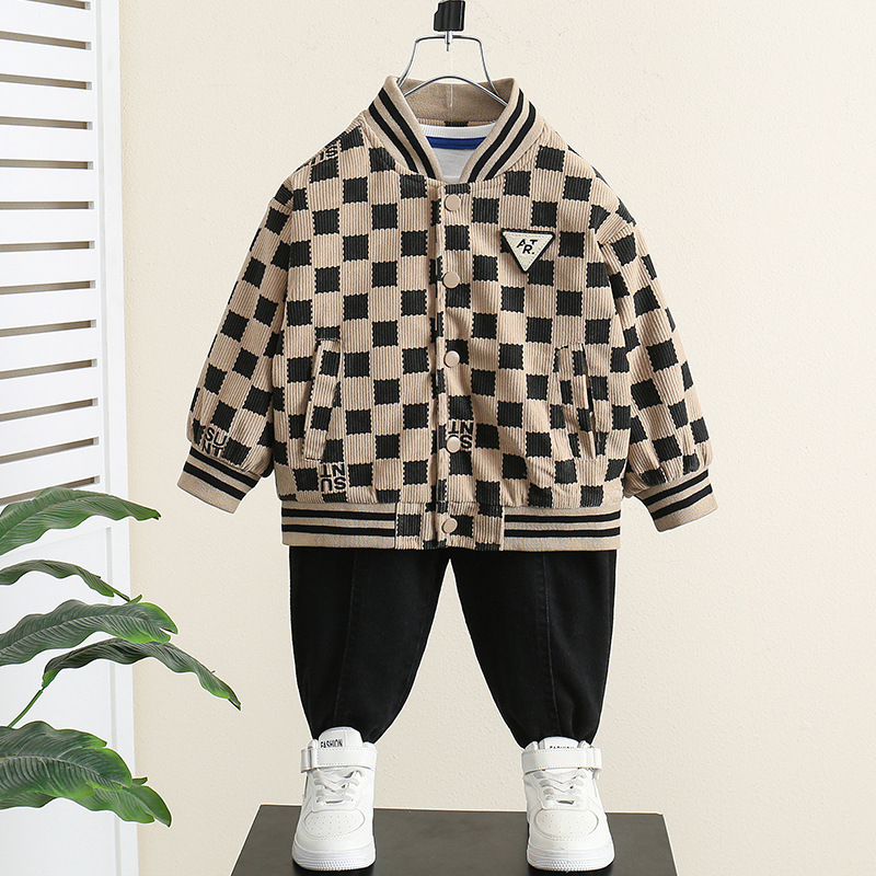 男児2024新型格子コート春秋洋気赤ちゃん韓国版ジャケット子供秋タイプおしゃれ野球服