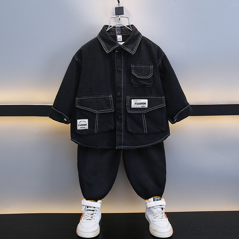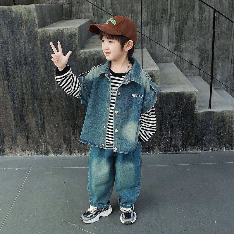 男児秋装セット2024新型児童クールかっこいいカウボーイ馬甲赤ちゃん童装少年春秋金三点セット