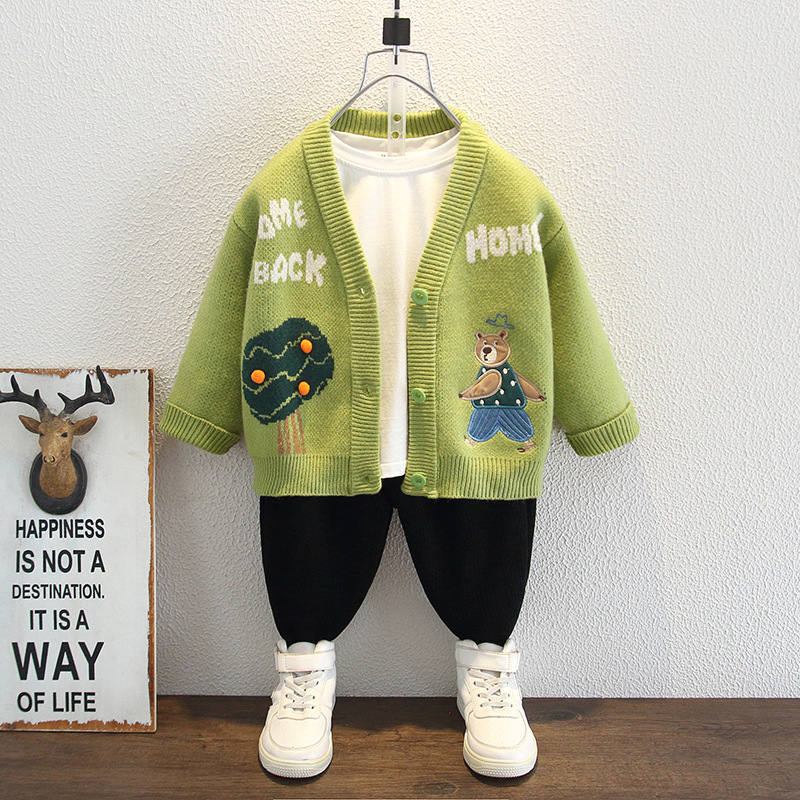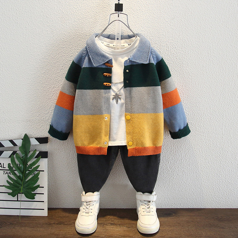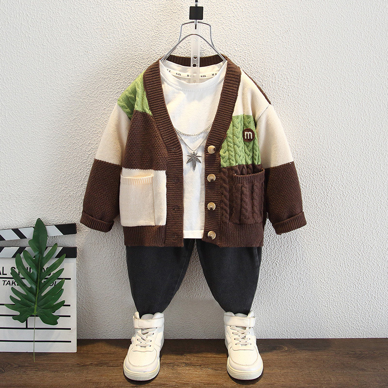 男の子用ニットコート春秋2024新作男の子用秋服子供用洋風早秋潮子供用セーターコート