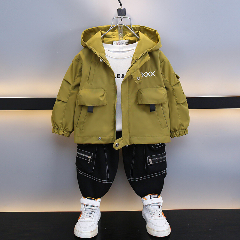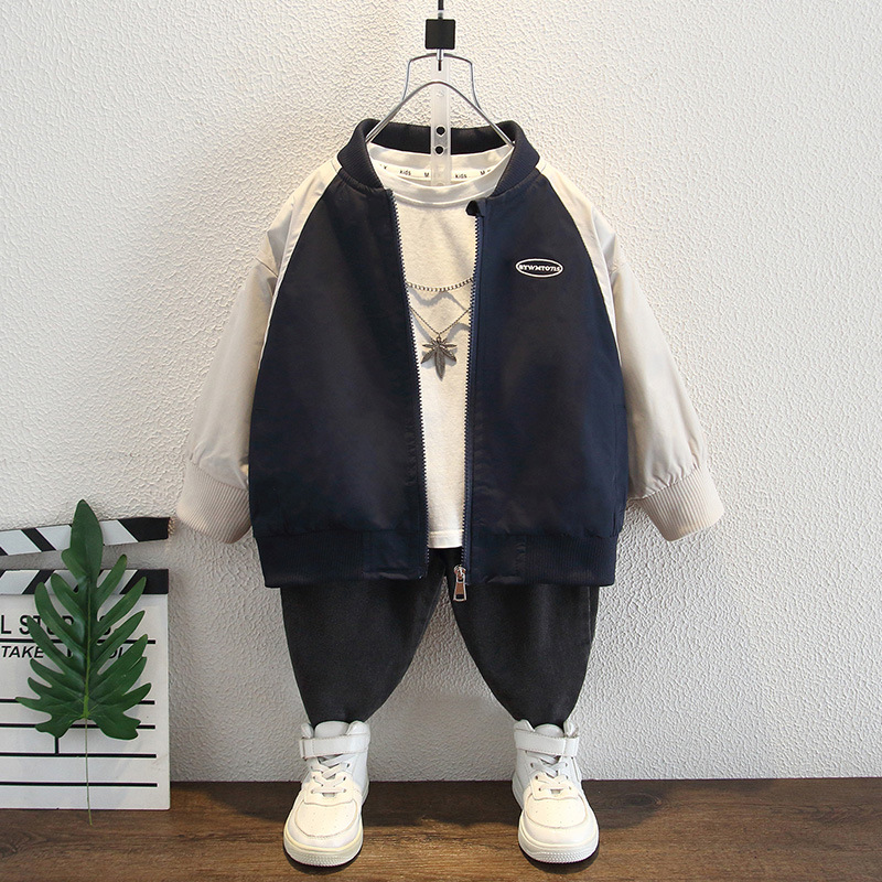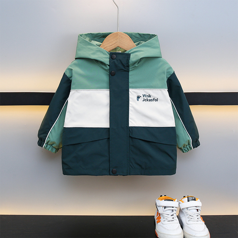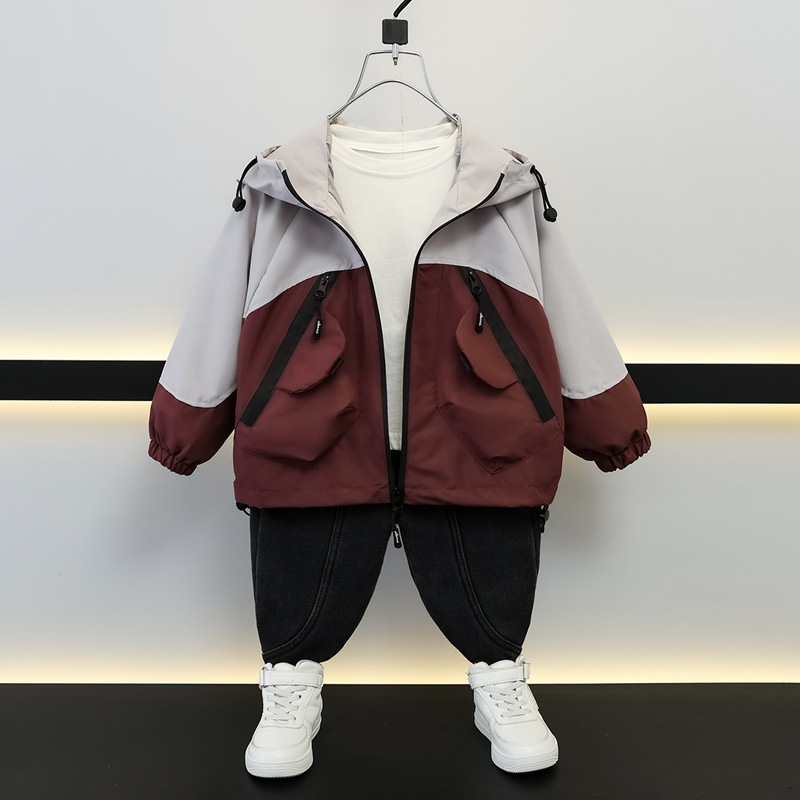 子供ジャケット 2025 春と秋の新しい子供防風屋外ツーピースセット秋男の子カラーブロック秋服