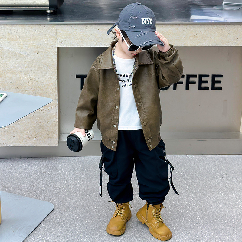 男の子コート秋ベビースタイルレザージャケット2025新しい小さな子供の春と秋のジャケットアウタートップ子供服