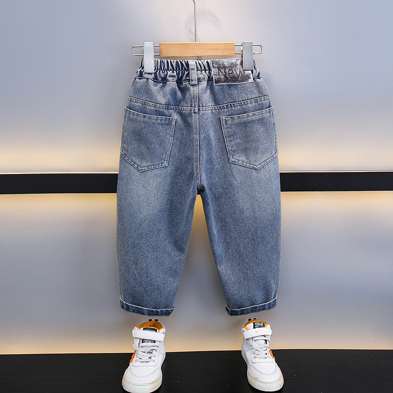 男児2024新型ジーンズ秋装子供服春秋タイプゆるいズボン男の子秋運動ストレートパンツ
