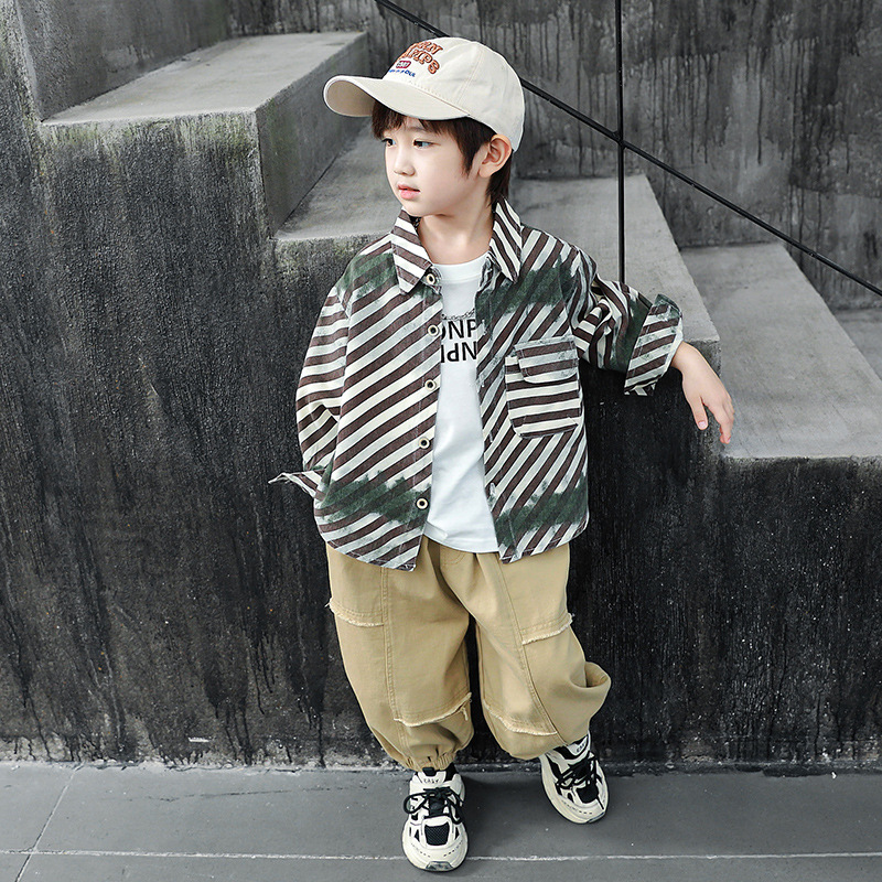 子供用2025春秋新作シャツ、シャツ、ジャケット、男の子、中型、ベビー秋服、トレンディでハンサム