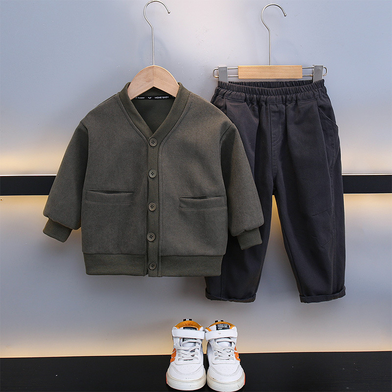 男の子のカーディガンのセーターのvネックの春と秋のの新型の子供の秋の服の男の子の赤ちゃんの初の秋の潮の子供のニットの上着
