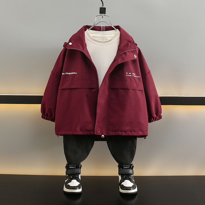 子供服の男の子の春秋のタイプのコートの2024新型のかっこいい子供の突撃服の洋風の流行の赤ちゃんの秋の服の上着