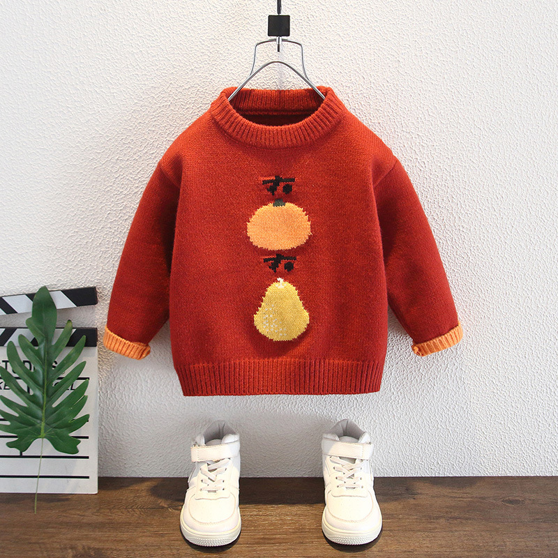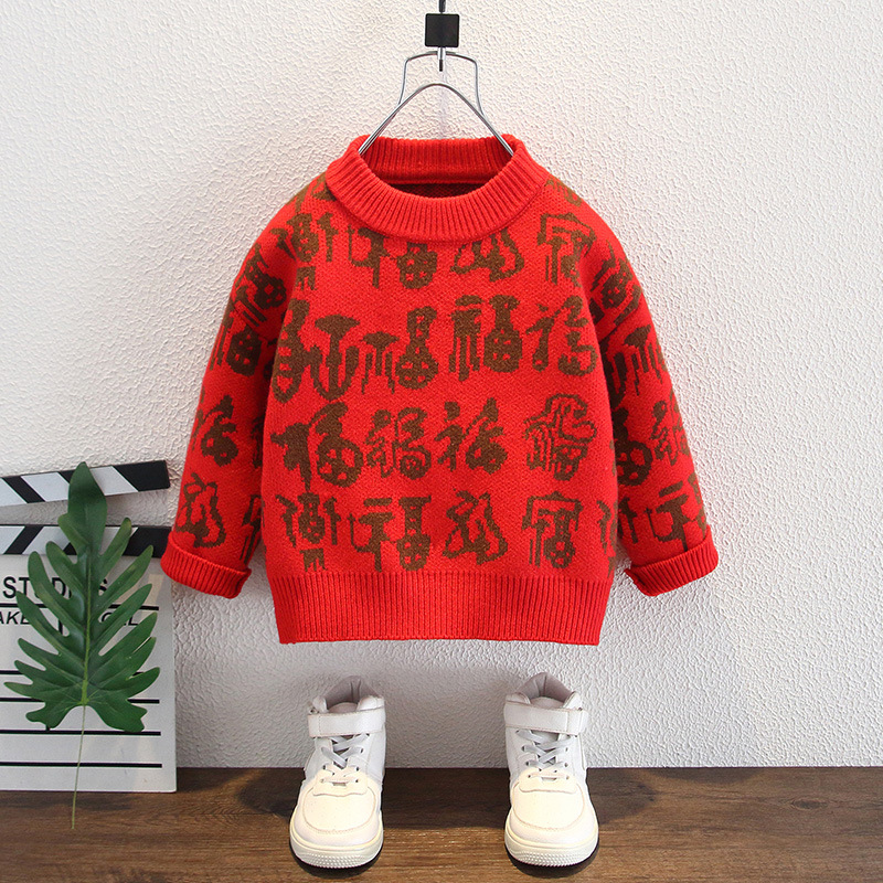男の子の新年のセーターは冬に厚くなって、2024年の男の子の赤ちゃんの冬は新年のお祝いの服の子供の赤い上着を着ます。
