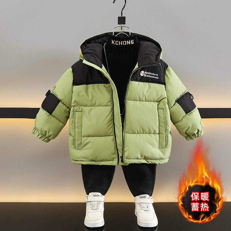 男児のベルベットと綿のガーディアンは冬の2024の新しい子供の冬服の格好いいファッションの子供のフードを着て秋冬を厚くした