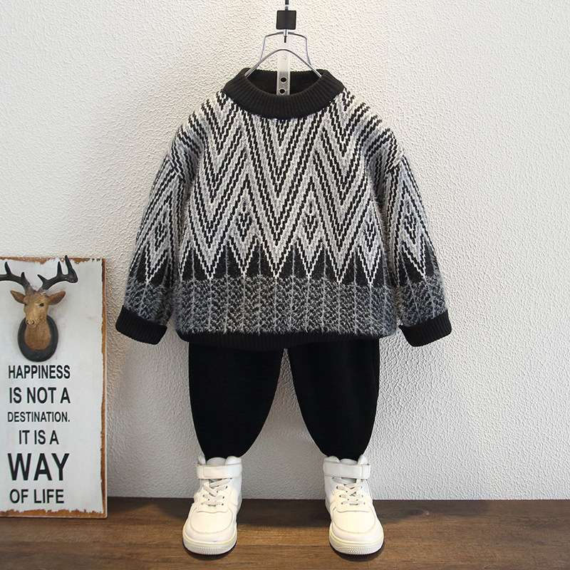 男児はセーターを厚くして秋冬の子供の冬服のセーターを着ます。
