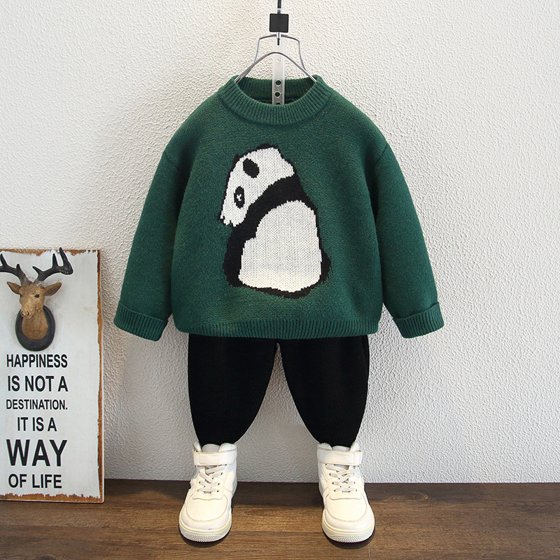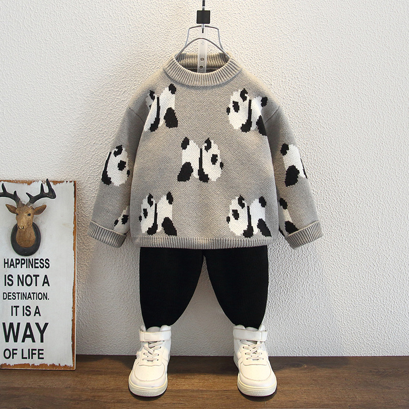 子供用パンダセーター秋冬2024新型子供秋服洋気男宝秋潮男児プルオーバーニット