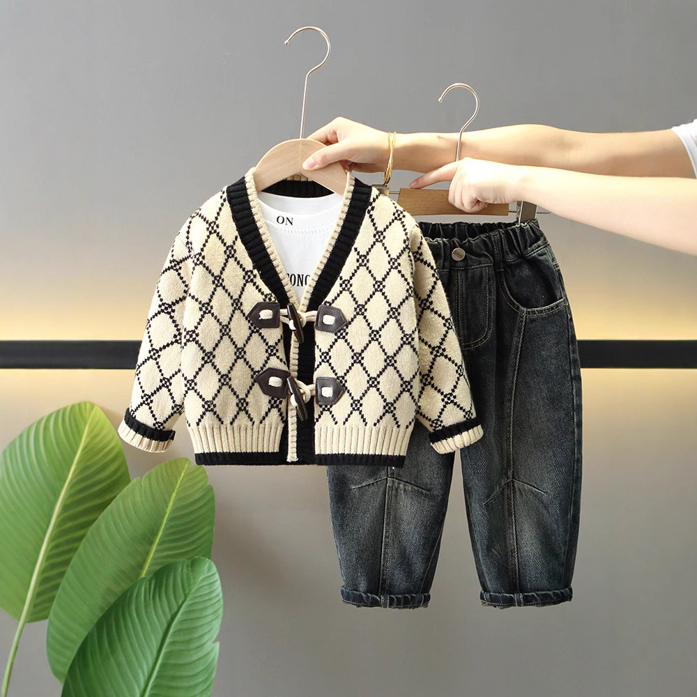 男児春秋服セット2024新型洋気赤ちゃん童ファッションセーター3点セット赤ちゃんクールジーンズ