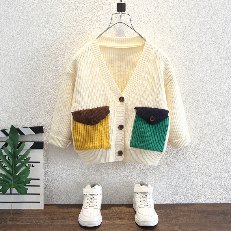 子供用vネックニットカーディガン春秋モデル2024新型子供秋服早秋男の子新型セーターコート