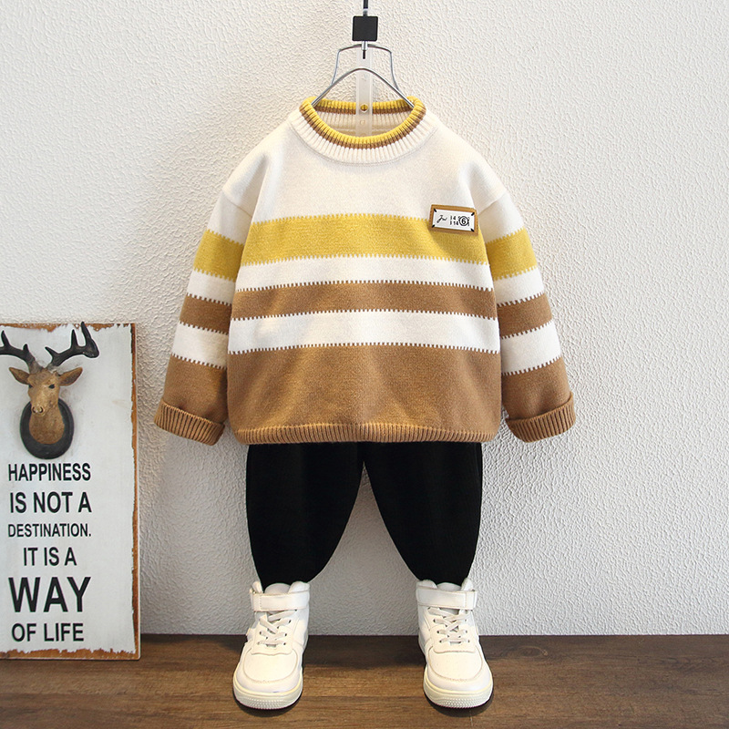 子供用ストライプセーター秋冬2024新型子供の秋の服の頭の洋風の男の子の男の子のニットは秋です。