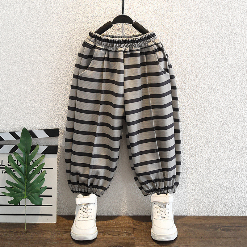 男児ズボン春秋金2024新男子流行格好格好格好格好格好ストライプカジュアルパンツ児童秋足首ズボン