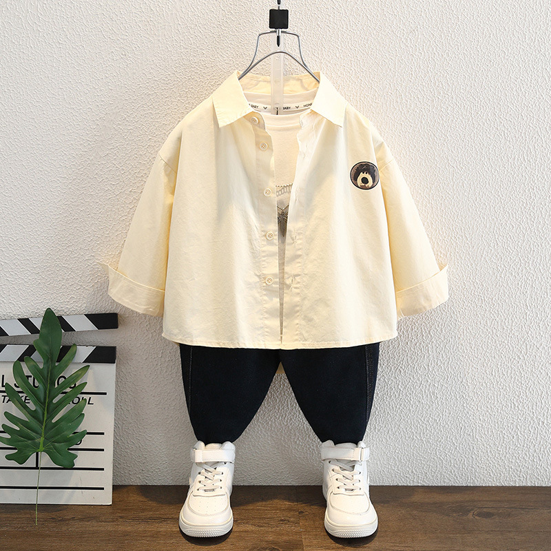 子供服男の子春服シャツコート2024新作春秋タイプ春のごろつきの男の子の赤ちゃんの白いシャツ