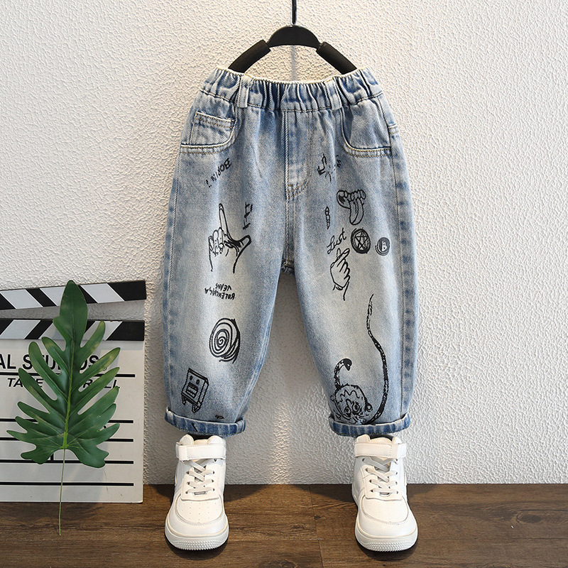 男児ズボン春秋金2024新韓国版児童春装ジーンズ洋気少年春ズボン痞帅