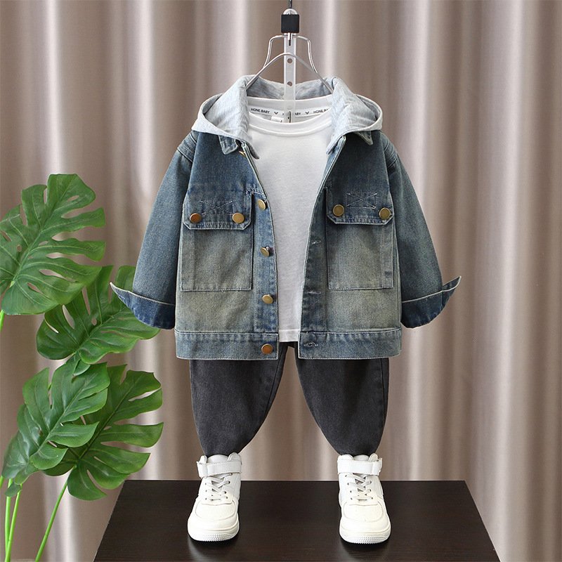 男児2024新作デニムジャケット春秋キッズキッズキッズキッズフード付きトップス男の子秋クールかっこいいジャケット