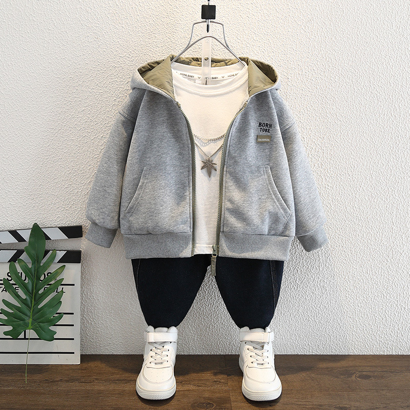 男の子の秋の服のスーツの赤ちゃんの春秋のクールでかっこいい流行のセーターのコートの子供の揚げ物の街の韓国版のレジャーの3つのセット