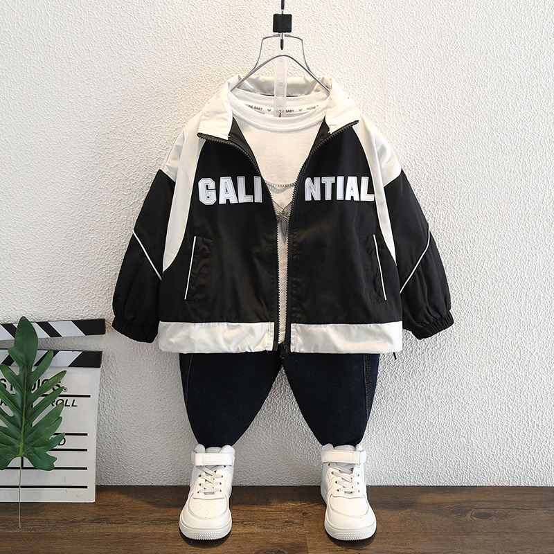 男の子の春と秋のスーツの新型の洋風の子供のクールでかっこいい3セットの子供の上着の赤ちゃんの男の子のファッションの秋の服