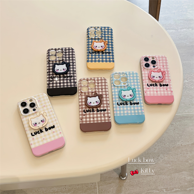 チェック柄kt漫画iphone16promax光沢仕上げアップル15proスタンド付きアップル新型スマホケースip16p