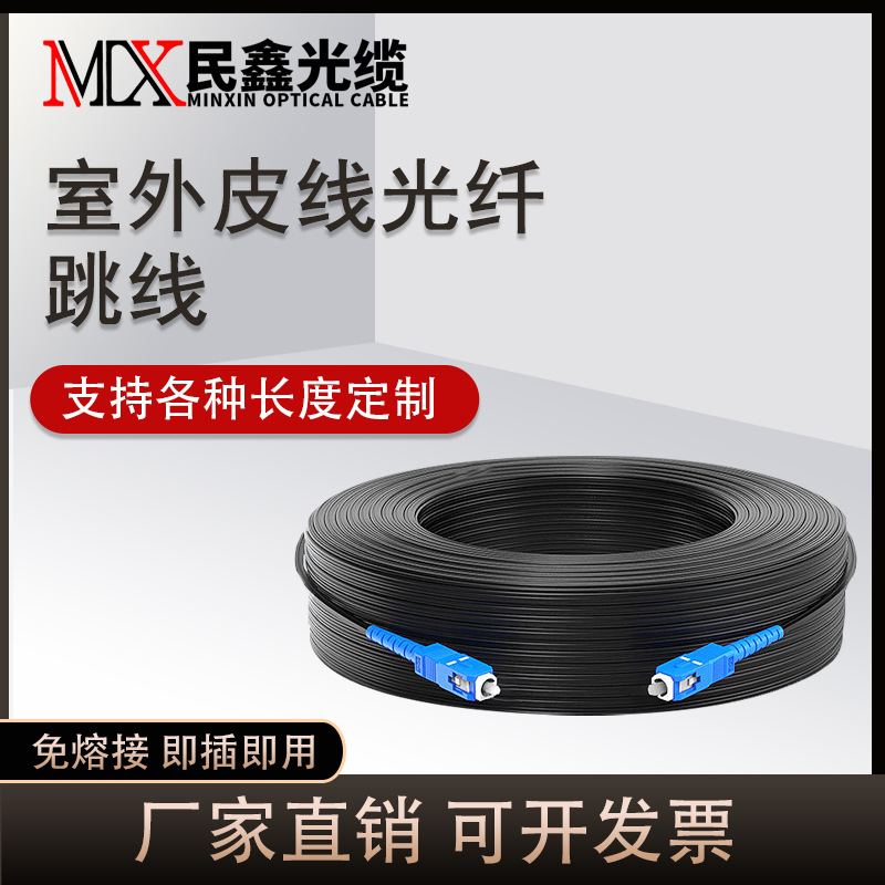 民鑫屋外用光ファイバーケーブル、光ファイバーユニバーサルケーブル、1芯3鋼線プレハブSC-SC光ファイバーケーブル